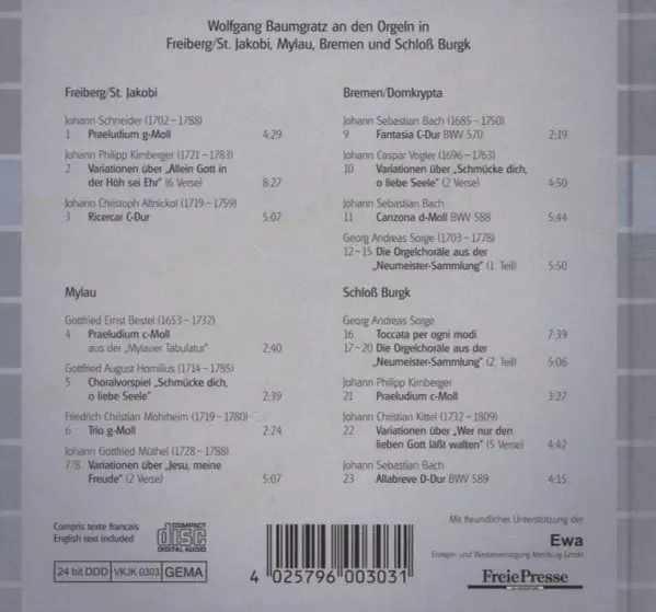 Titel | Die Orgeln Von Gottfried Silbermann Vol. 6 (Freiberg/St. Jakobi, Mylau, Bremen, Schloß Burgk) |