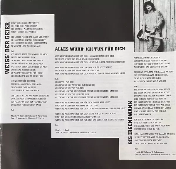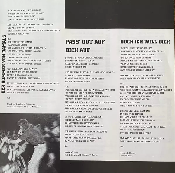 Lyrics By Cynthia A. Newman, Holger Obenaus, Jean-Pierre Valance, Norbert Zucker | Music By Bodo Ackermann, Jean-Pierre Valance, Wolfgang Petry