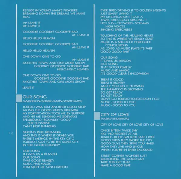 | 7 | Yes: Our Song | 4:18 min | |