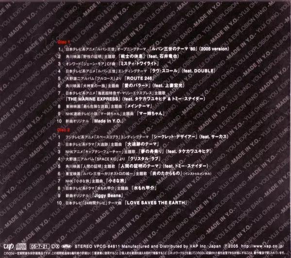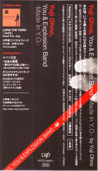 Yuji Ohno: Made In Y.O. = メイド イン Y.O. Die Version auf 2CD in Standard- Auflage. Diese besondere Auflage wurde veröffentlicht in Japan im Verlag Vap am 25. Juli 2005. Album Genres übergreifend Stage & Screen, Jazz und Funk / Soul.